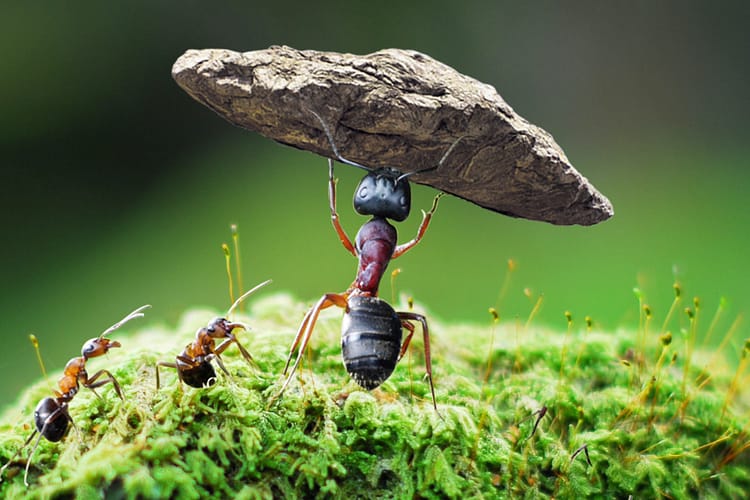Figyeljétek meg, milyen kis vékony, törékenynek tűnő nyaka van egy hangyának. Nos, egy a kis nyakacska a hangya testsúlyának 5000x-esét is elbírja. Elképesztő. Persze a hangya ettől még nem bír el ekkora súlyt, mert nem az egész test struktúrája képes erre a mutatványra, de így is elbírja a saját súlyának 50x-ét. Durva, nem? Igazi kis erőemelők!